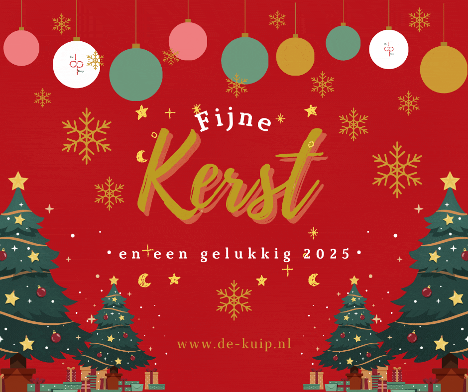 I.v.m. de kerstvakantie zijn we van maandag 23 december 2024 t/m donderdag 2 januari 2025. Vanaf vrijdag 3 januari zijn we weer geopend.