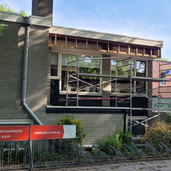 Afgelopen zaterdag is er opnieuw hard gewerkt bij De Kuip. Nadat de firma Aarnink de kozijnen van de grote ramen in de foyer had vervangen, hebben onze vrijwilligers het hout boven deze kozijnen vervangen door onderhoudsarm kunststof.