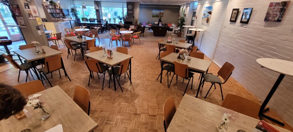 Een grote en sfeervolle zaal voor diverse activiteiten. Aan de Dick Timmermans Toog, zijn diverse drankjes verkrijgbaar zoals koffie, thee, sportdrankjes, frisdranken, bier en wijn. Deze bar is vernoemd naar onze oud medewerker Dick Timmermans na zijn overlijden in 2020. Er is een biljart en naast de knusse open haard kunnen de gasten even napraten over de vergadering, het sporten of het repetitie.