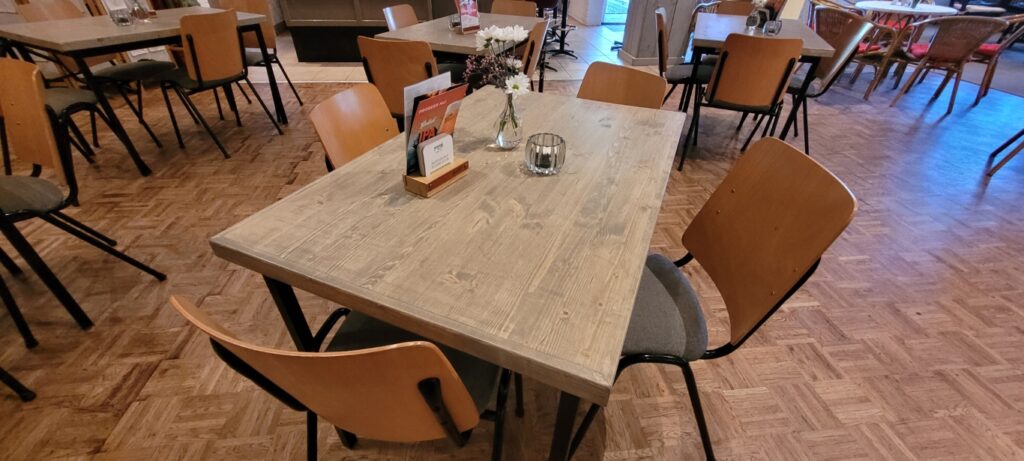 - Stoelen en tafels kunnen in diverse opstellingen worden geplaatst.
