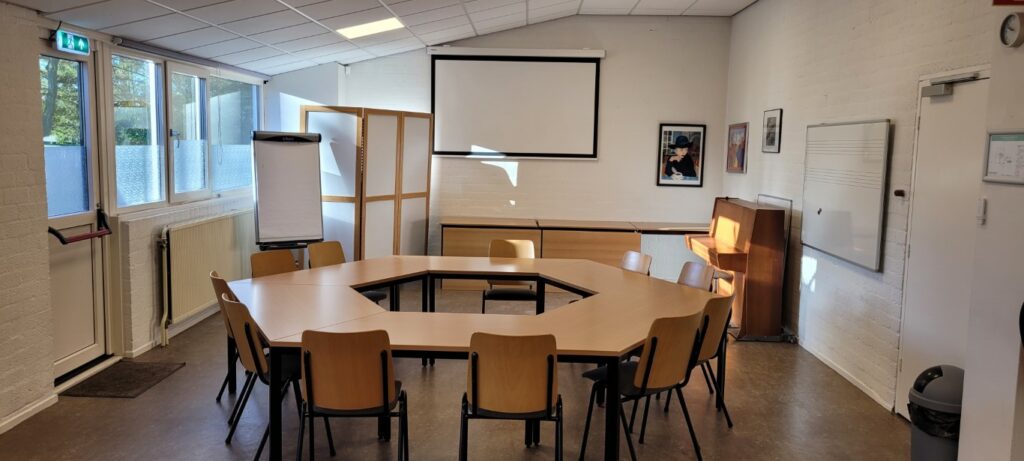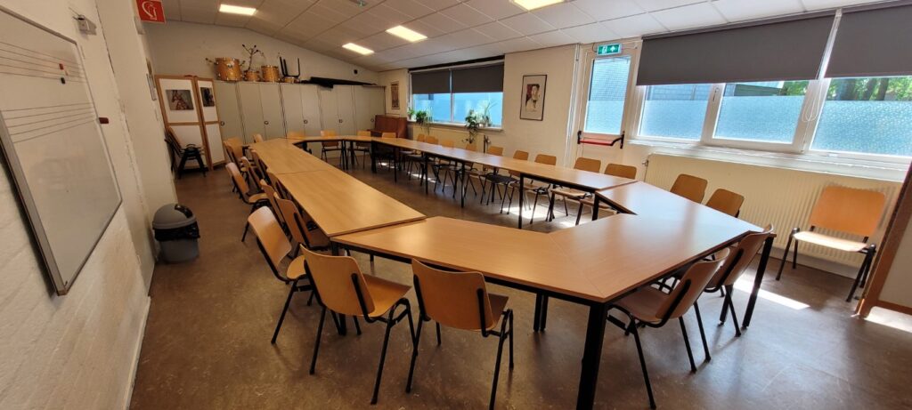 Deze zaal is geschikt voor bijeenkomsten tussen de 25 en 50 personen. Ook deze zaal beschikt over een open Wi-Fi netwerk en vergadermeubilair. Een ideale repetitieruimte voor kleinere koren, zanggroepen en orkesten.